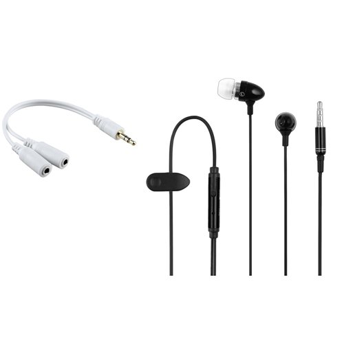 Noir Casque Stéréo Micro+Y Audio Jack Cordon Doubleur Pour Iphone 4 4s Hd Gen